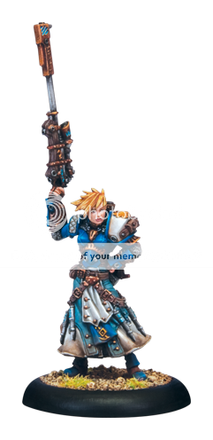 Captain Kara Sloan goes to war as a one-woman rifle brigade. When focused on the destruction of her foe, every warjack she commands becomes linked to the pull of her rifle’s trigger to unleash a barrage of unparalleled accuracy and power simultaneously. Armed with her custom magelock rifle, she walks into the most vicious of firefights without hesitation and always emerges the victor.